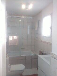1 Badezimmer: Badewanne mit Duschvorrichtung, Haarfön, Waage