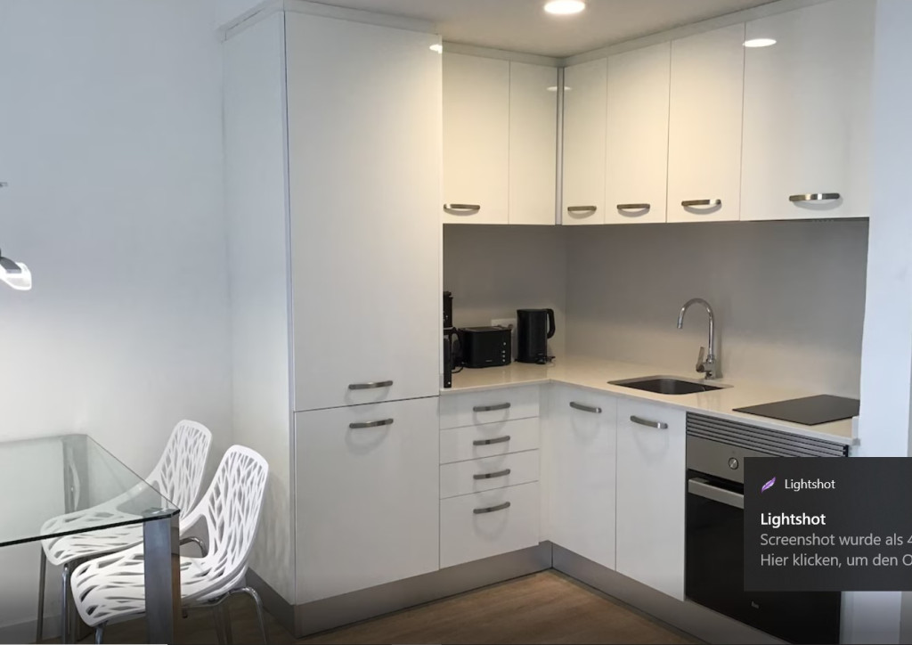 Offene Küche: komplett ausgestattet; 2-er Ceranfeld, Backofen, Toaster, Kühl-/Gefrierkombination, Wasserkocher, Kaffeemaschine usw.