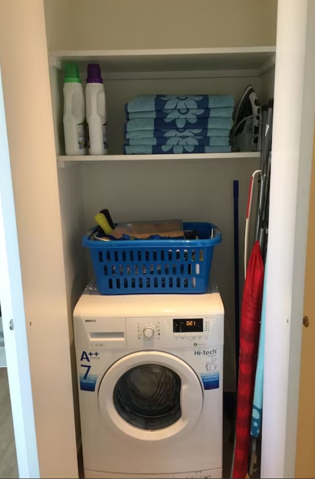 Hauswirtschaftsraum: Waschmaschine, Staubsauger, Wäscheständer, Bügel-Set