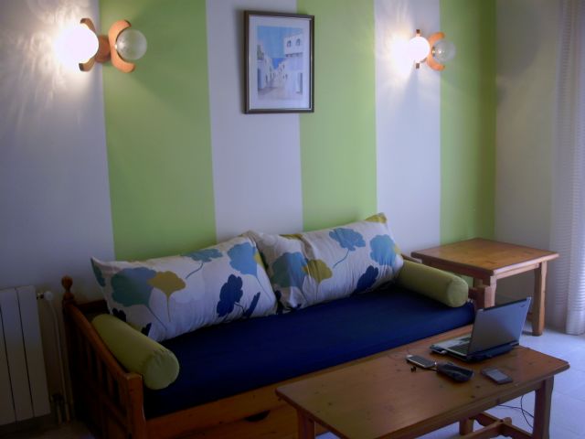 Wohn-/Esszimmer mit Schlafsofa, SAT–TV, DVD-Player