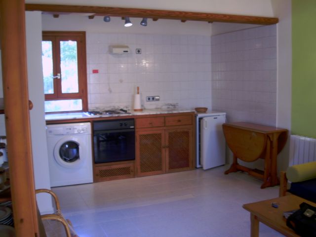 offene Küche mit 4-Flammenherd, Backofen, Kühlschrank, Toaster, Kaffeemaschine, Waschmaschine usw.