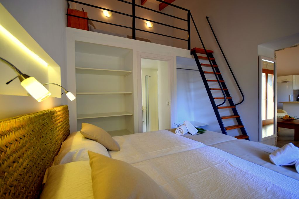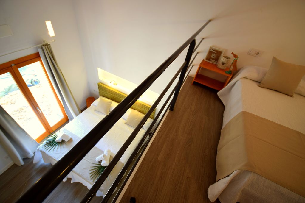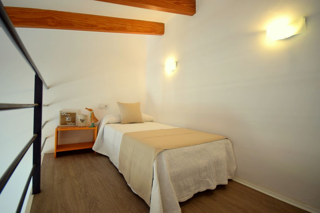 1 offenes Schlafzimmer mit 1 Einzelbett (oben auf der Galerie)
