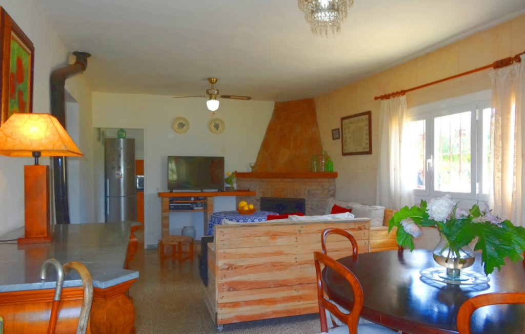 Wohn-/Esszimmer: offener Kamin (Holz, auf Anfrage), SAT-TV, gemütliche Sofaecke, Essbereich