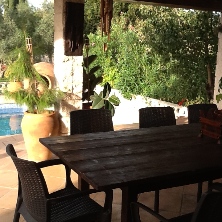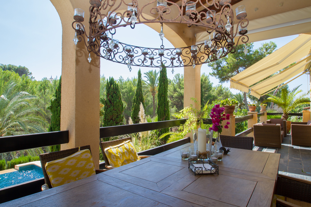 Außenbereich: angelegter Garten, teilweise überdachte Terrassen mit Gartenmöbeln, Chill-Out-Zone, Bad mit Dusche, Pool, Sonnenliegen, Kfz-Stellplatz