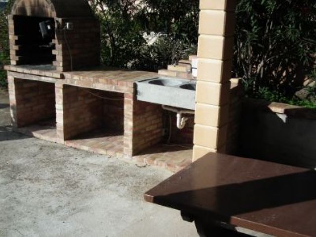 Außenbereich: überdachte Terrasse mit Gartenmöbel, Garten, Pool mit Poolterrasse, Sonnenliegen, Sonnenschirm, Außendusche, BBQ, überdachte Terrasse mit Holztisch und 2 Bänken, Kfz-Stellplatz