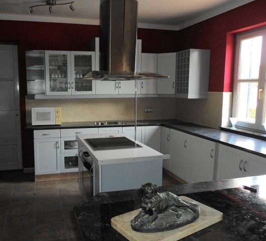 Offene Küche: Cerankochfeld, Backofen, Kühlschrank, Gefrierfach, Mikrowelle, Geschirrspüler, Kaffeemaschine, Toaster, Kochutensilien usw.