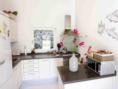 Offene Küche: Elektroherd, Backofen, Kühlschrank, Gefrierfach, Mikrowelle, Geschirrspüler, Kaffeemaschine, Toaster, Eismaschine, Kochutensilien, Waschmaschine, Trockner, Bügel-Set, Grill usw.