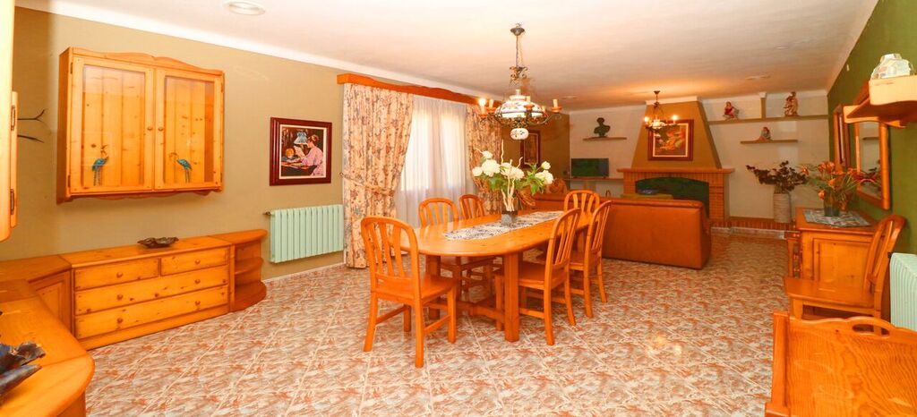 Wohn-/Esszimmer: offener Kamin, SAT-TV, gemütliche Sofaecke, DVD-Player, Essbereich