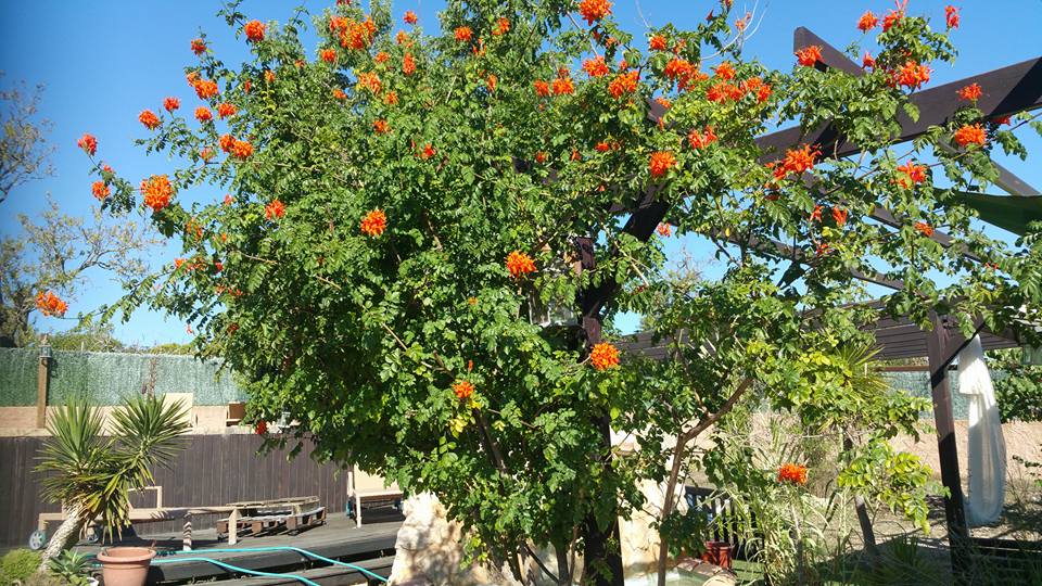 Außenbereich: angelegter Garten, teilweise überdachte Terrassen, Gartenmöbel, Liegen, Pool, Außendusche, Außenküche, BBQ, Kfz-Stellplatz, Doppel-Car-Port